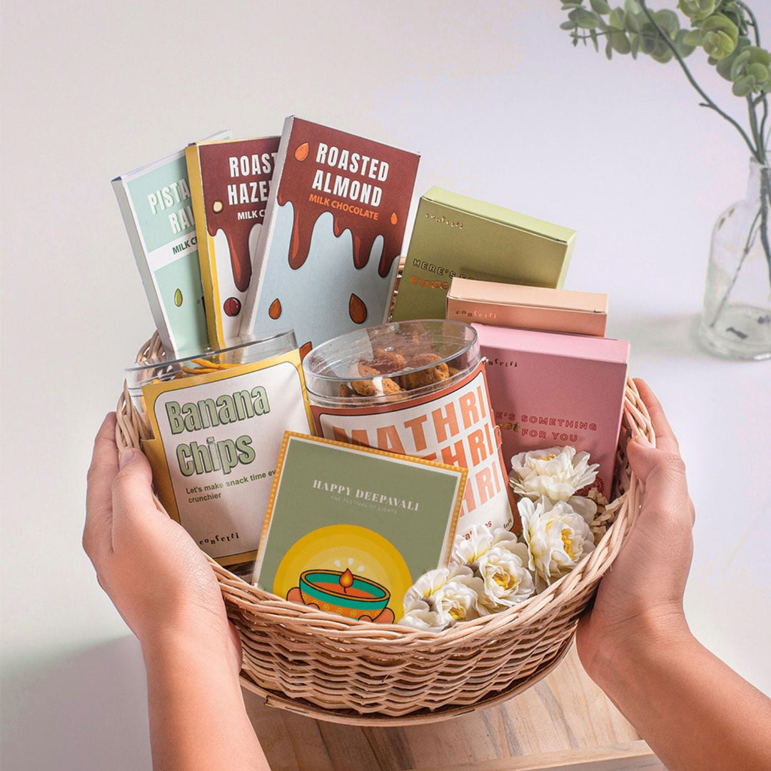 Snack gift boxes can include a whole lot of food items as well as other stuff depending on what you are searching for and the liking of the gift receiver. Confetti food gift boxes give you products from chai & coffee products to sweet and delicious sweet eatables in beautiful reusable boxes at a very affordable price!