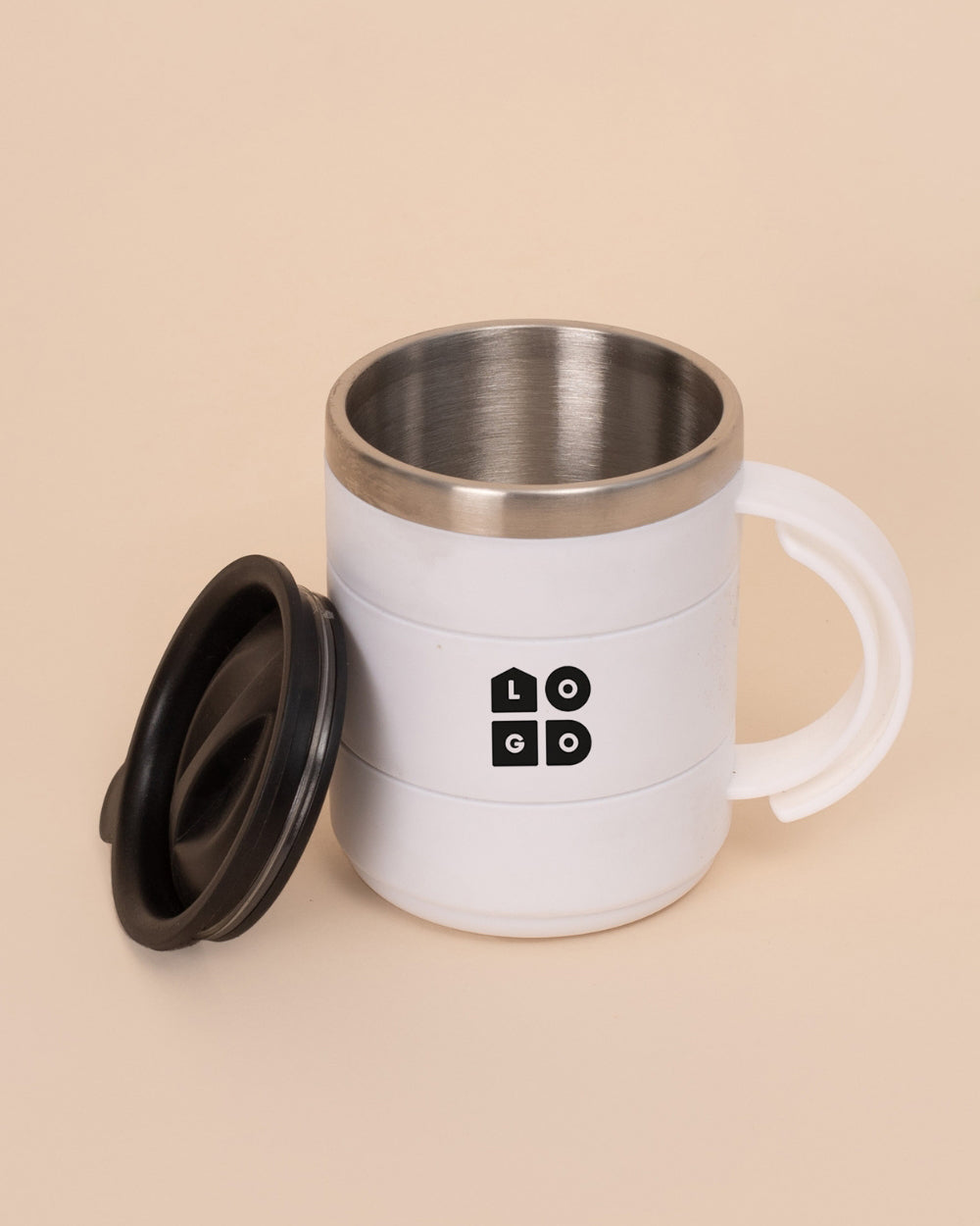 - White Stainless Steel Coffee Mug with lid with Your Logo( Material: Stainless Steel, 350ml)