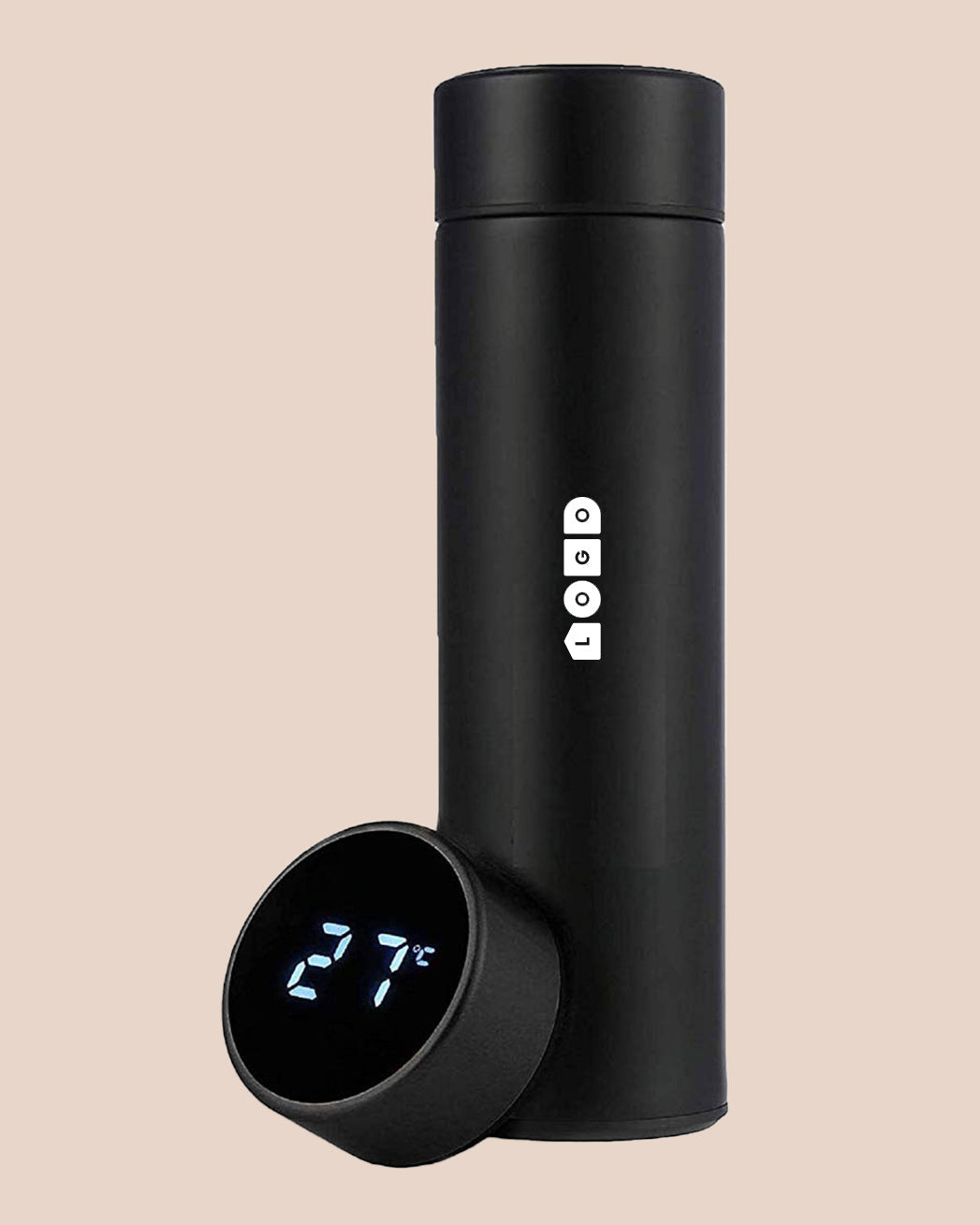 Black Stainless Steel Temperature Display Water Bottle, 500ml