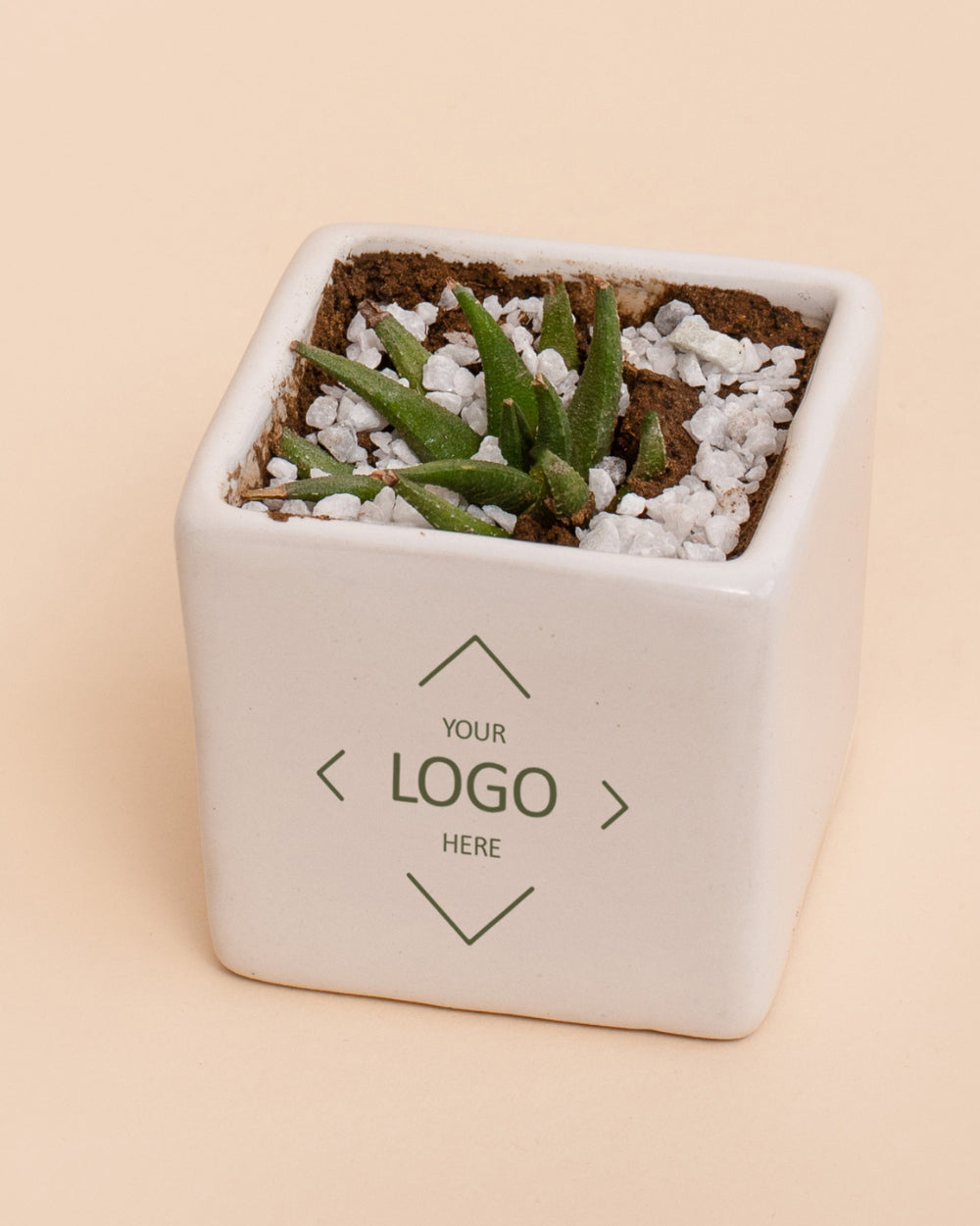 • White Ceramic planter with Succulent Plant (3.5 x 3.5 x 3.5 inch )